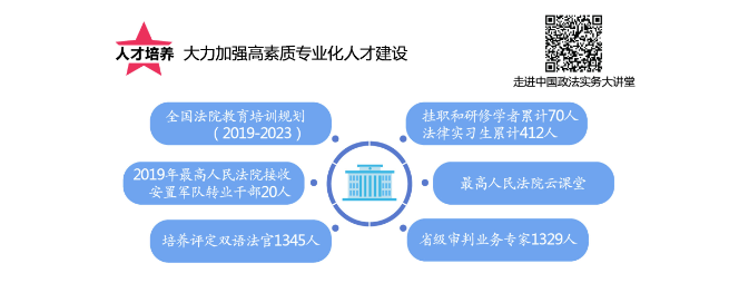 不断加强司法能力建设。培训干警61.5万人次。创新法治人才培养机制,深化同高校合作,积极参与中国政法实务大讲堂专题讲座,促进司法实践与教学科研紧密结合。选派851名法官参加涉外培训交流,培养专业化涉外司法人才。加强基层基础建设,改善基层工作条件,加大对革命老区、民族地区、边疆地区、贫困地区法院建设和人才培养支持力度。培养双语法官1345人,内蒙古、西藏、青海、新疆等法院积极参与“双语法律文化出版工程”,更好满足民族地区群众司法需求。