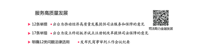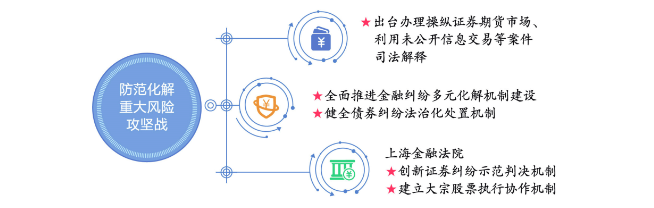 服务防范化解金融风险。出台司法解释,依法惩治操纵证券期货市场、内幕交易犯罪。会同人民银行、银保监会、证监会推进金融纠纷多元化解,依法保护投资者、金融消费者合法权益。为设立科创板并试点注册制改革制定司法保障意见,服务资本市场基础性制度改革。北京、上海等地法院有序推进“e租宝”等涉互联网金融案件清偿工作,依法参与涉金融风险重大案件处置。云南等法院依法审理“泛亚有色”等非法集资案件,积极追缴处置涉案财产,努力帮助群众挽回损失。上海金融法院创新证券纠纷示范判决机制,探索中小投资者司法保护新路径。