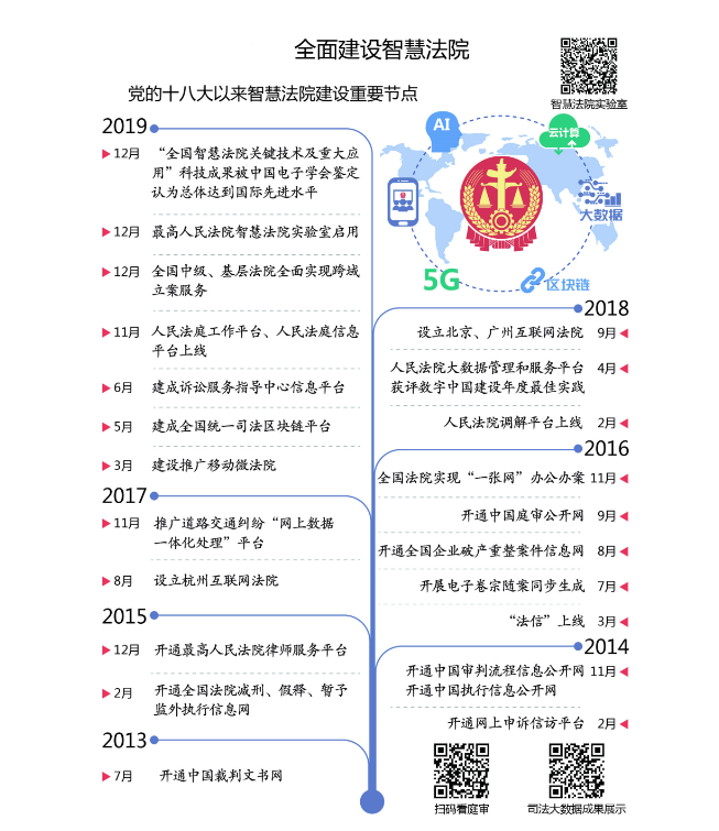 推动大数据、区块链等技术深度应用。深化司法大数据应用,完成专题报告806份,为治理高空抛物坠物、保护妇女儿童权益等提供参考。建成全国统一司法区块链平台,创新在线存证方式,推动解决电子证据取证难、存证难、认证难问题。在执行中应用区块链智能合约技术,提高执行规范化水平。推广庭审语音识别、文书智能纠错、“法信”智能推送等应用,为法官办案、群众诉讼提供智能辅助。