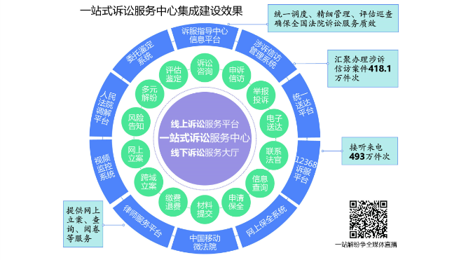 建立一站式多元解纷和诉讼服务机制。推进案件繁简分流、轻重分离、快慢分道,在诉讼服务中心建立调解、速裁、快审一站式解纷机制,为实现公平正义提速。全国法院诉讼服务中心化解案件849.7万件,其中速裁快审案件平均审理周期较一审民商事案件缩短49.2%。畅通诉讼服务渠道,决不让群众无处申诉,决不许对群众诉求置之不理。在诉讼服务中心提供一站通办、一网通办、一号通办的诉讼服务,江西、湖南等地法院在乡村社区设置自助诉讼服务设施,让群众参与诉讼更加便捷。
